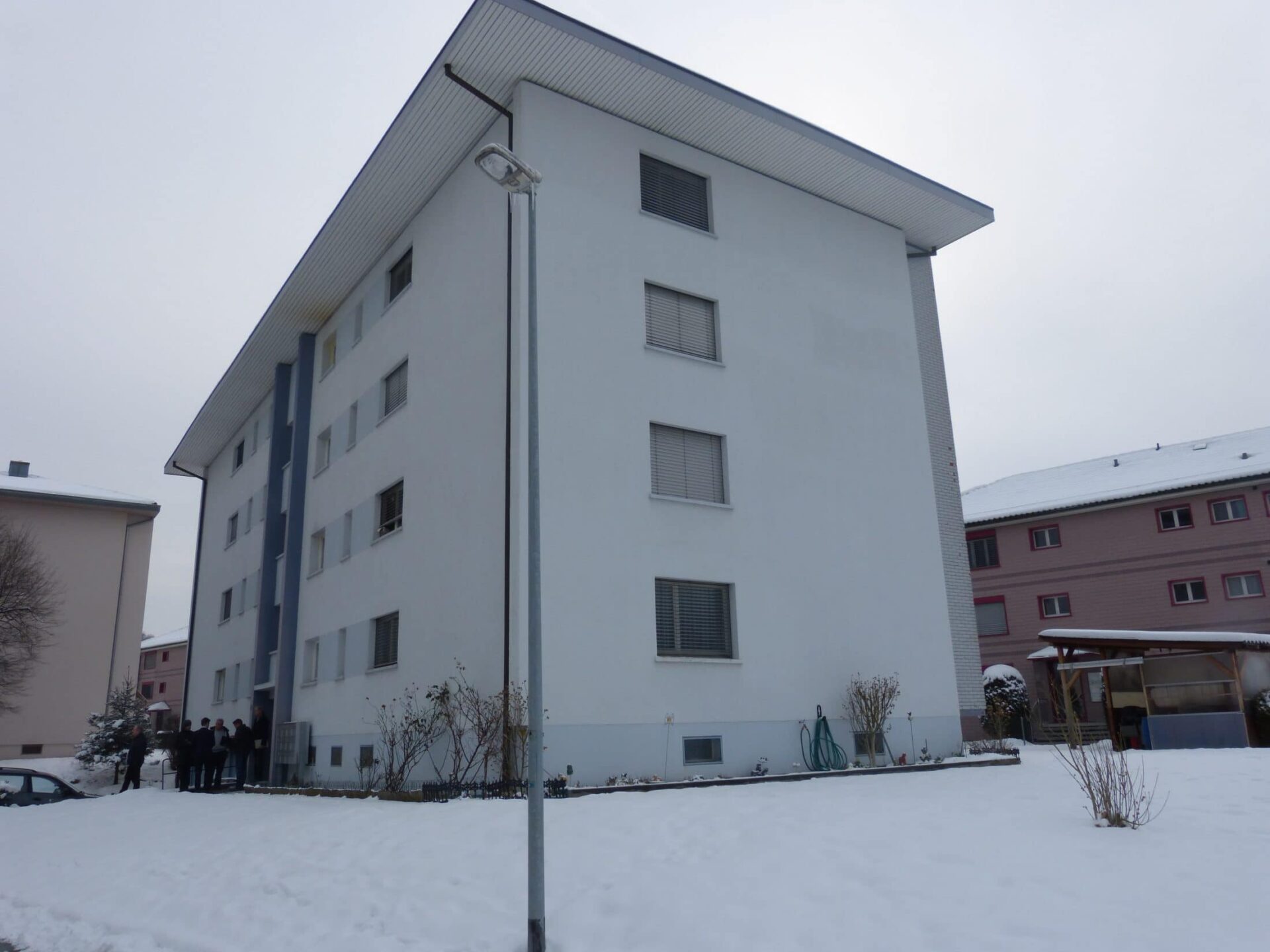 Das Mehrfamilienhaus liegt in einem ruhigen Wohnquartier. Die Bushaltestelle ist wenige Gehminuten entfernt. Einkaufsmöglichkeiten und Schulen befinden sich im Ortskern.