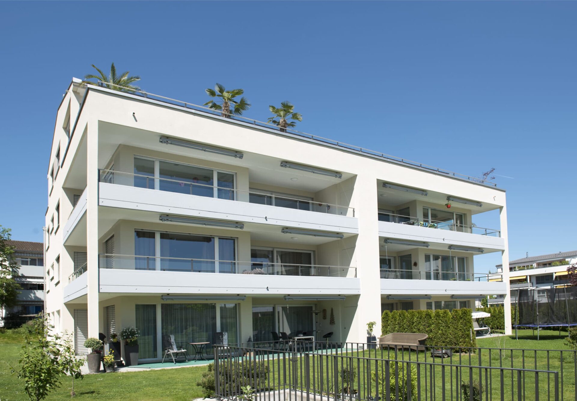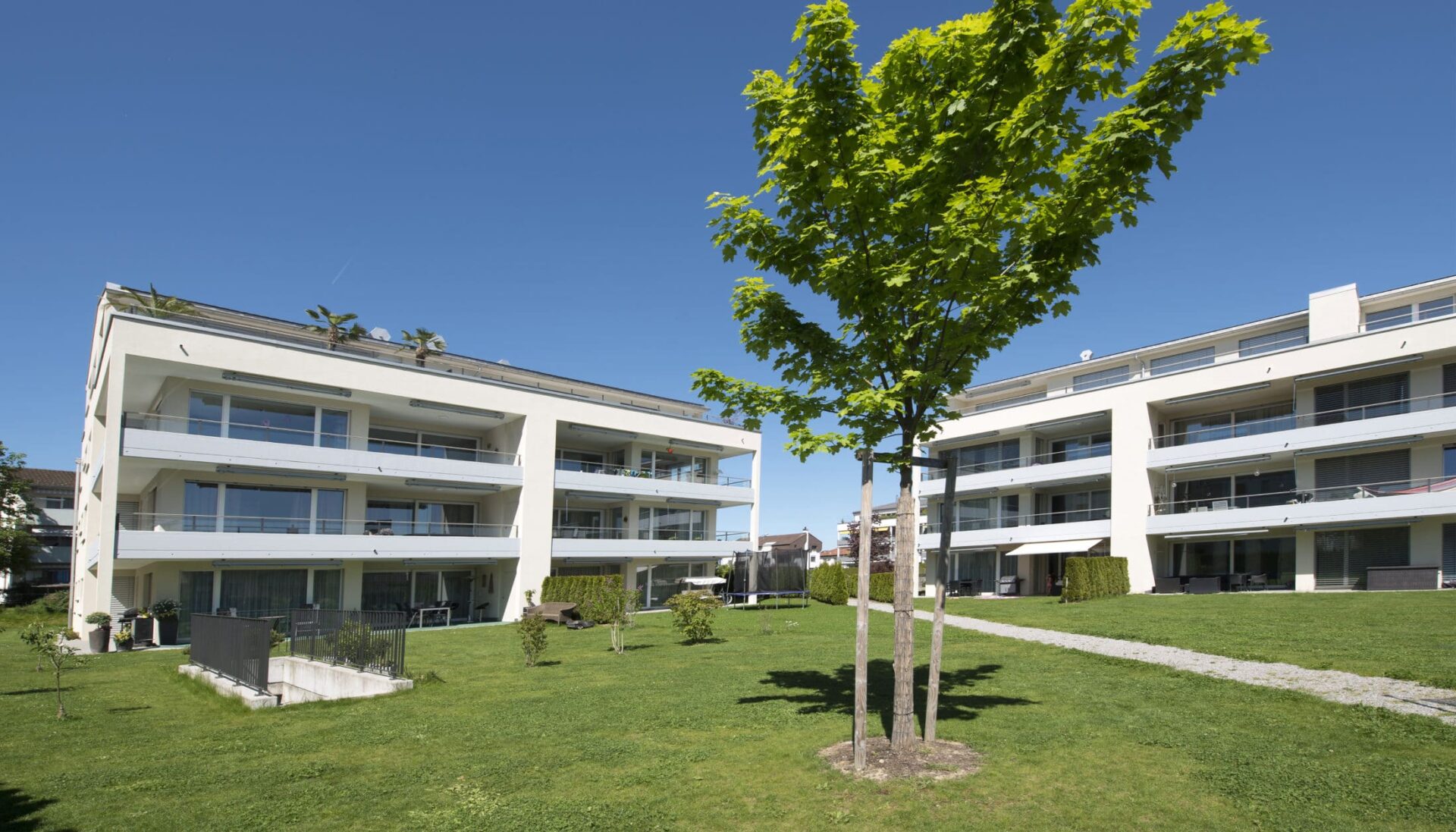 Das architektonische Konzept sieht eine harmonische Einbindung der zwei Häuser in die bestehende Siedlungsstruktur vor. Die Überbauung befindet sich an sehr ruhiger Lage und wird durch eine private Zufahrt erschlossen. Die beiden Wohnhäuser sind geprägt durch ihre schlichte, elegante und moderne Architektur. Die Umgebung besticht durch ihren grosszügigen, südwestlich gelegenen Aussenraum, der viel Platz für Begegnung und Spiel offen lässt. Die offene Küche mit vorgelagertem Essbereich und das seitlich angeordnete Wohnzimmer gehen fliessend ineinander über und ermöglichen so ein grosszügiges und behagliches Wohngefühl. Die hellen Schlafzimmer, eine gute Möblierbarkeit, grosse Badezimmer und der separate Abstellraum vervollständigen die hohe Qualität dieser Wohnungen. Modernste Haustechnik, exklusive Materialien, hochwertige Verarbeitung und Minergie© Standard mit kontrollierter Wohnungslüftung lassen keine Wünsche mehr offen.